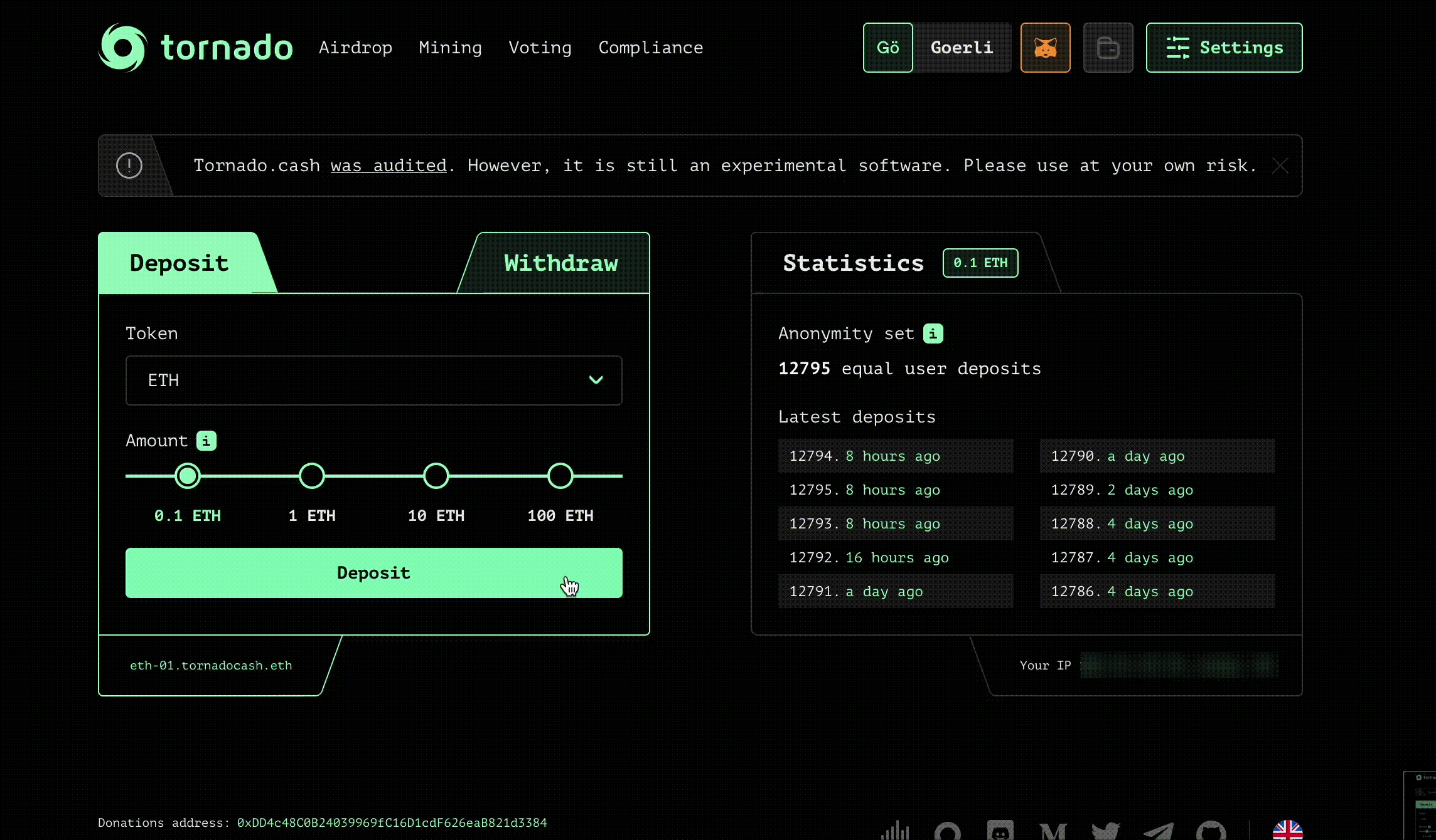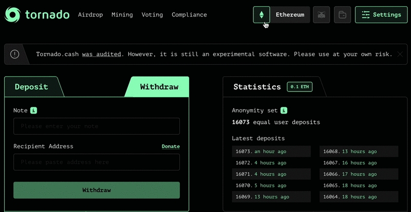 本教程将逐步讲解如何存入和提取资金。如果您想了解 Tornado.cash 的内部系统如何运作,请参阅本教程