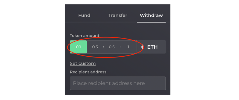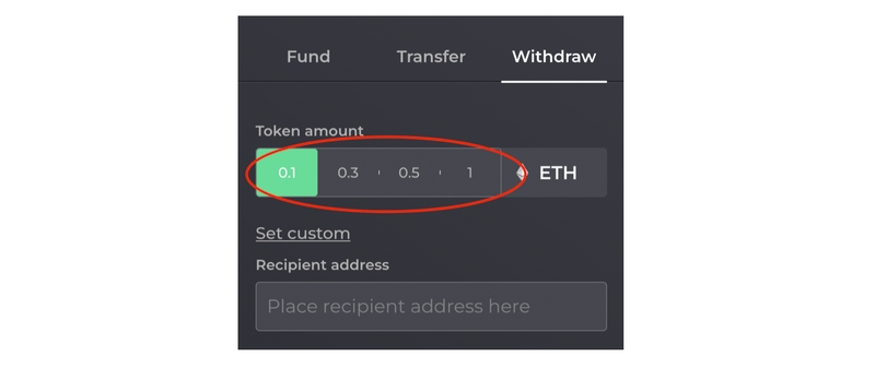 您仍然可以自由Set custom提取您选择的自定义金额。但是,根据所选金额,如果出现以下情况,您的初始资金交易和提款之间可能会存在关联: