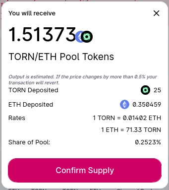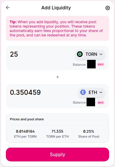 在本教程中,我们将了解如何在 Uniswap v2 TORN/ETH 对中添加和删除流动性。