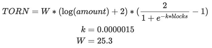 相信的用户 龙卷风现金 从一开始,在管理协议方面应该有发言权。因此,该协议的早期采用者确实收到了TORN的空投 所有地址 存款 龙卷风现金 块之前的ETH池 11400000。TORN以不可转让的TORN凭证(vTORN)的形式空投,可以在2020年12月18日至2021年12月18日的1年内以1:1的价格赎回给TORN。未赎回的TORN将在1年后纳入治理合同,并成为DAO财政部的一部分。重新设计的TORN将立即可用。空投金额取决于用户’存款规模和年龄—较大的存款,而较旧的存款将获得更多的TORN。存款大小的乘数是对数的: